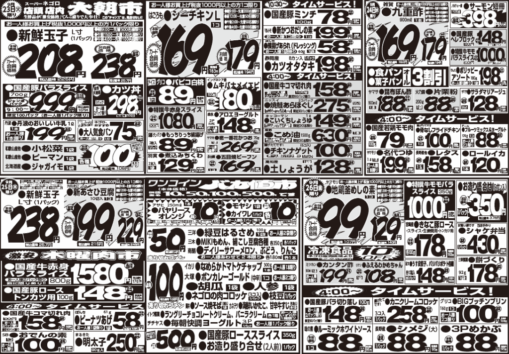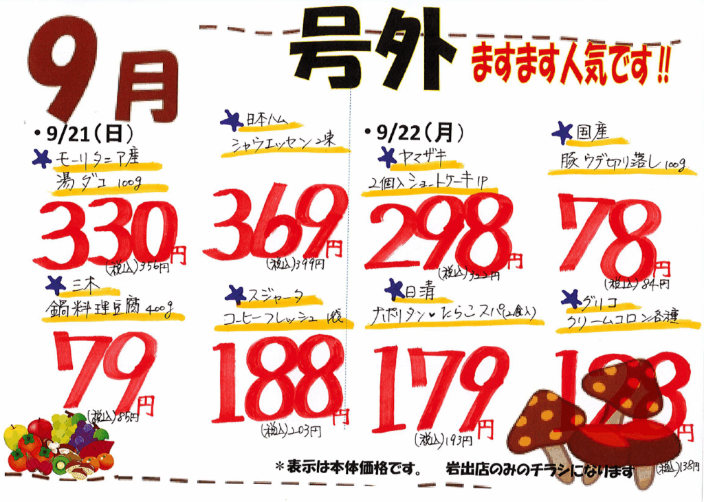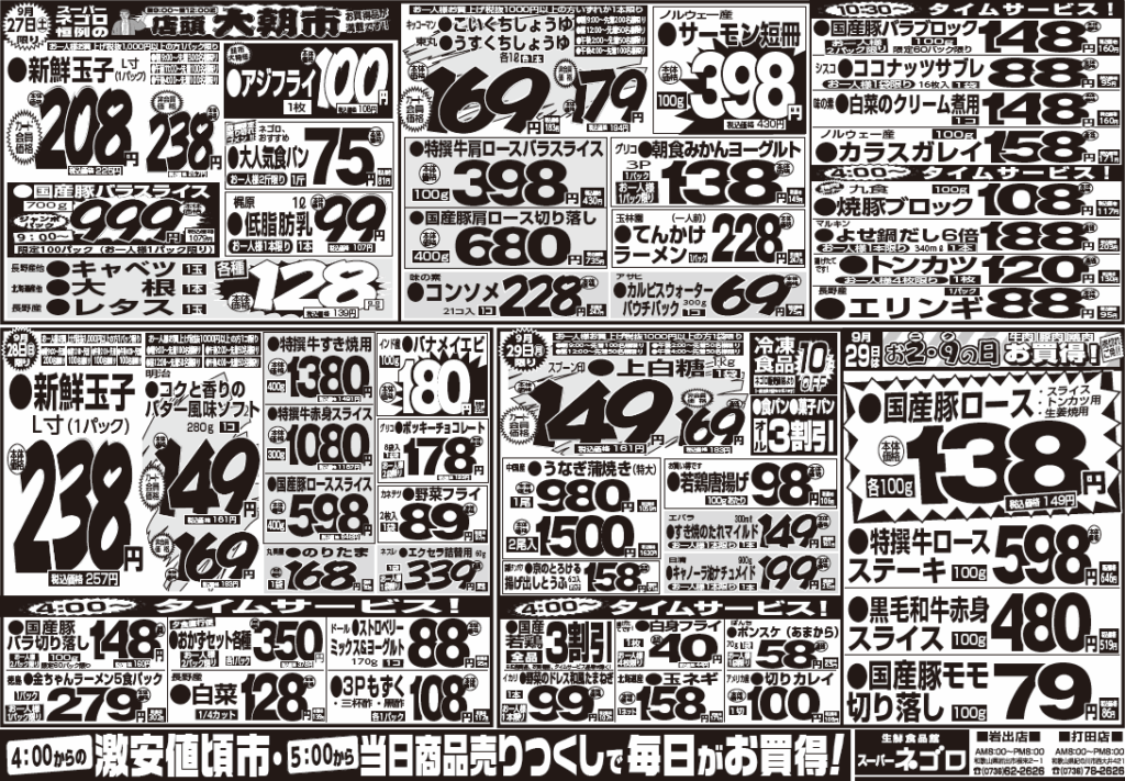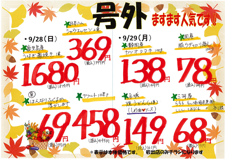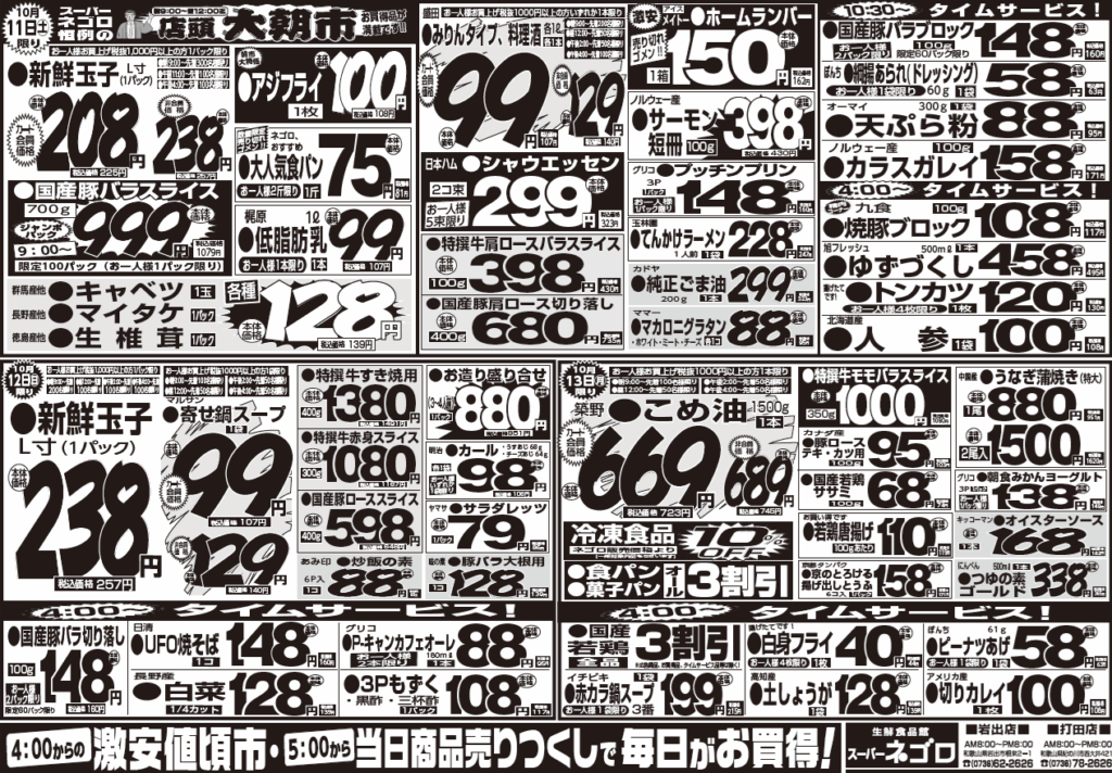 4️⃣時からの「激安値頃市」5️⃣時から「当日商品売りつくし」で毎日がお買得‼️