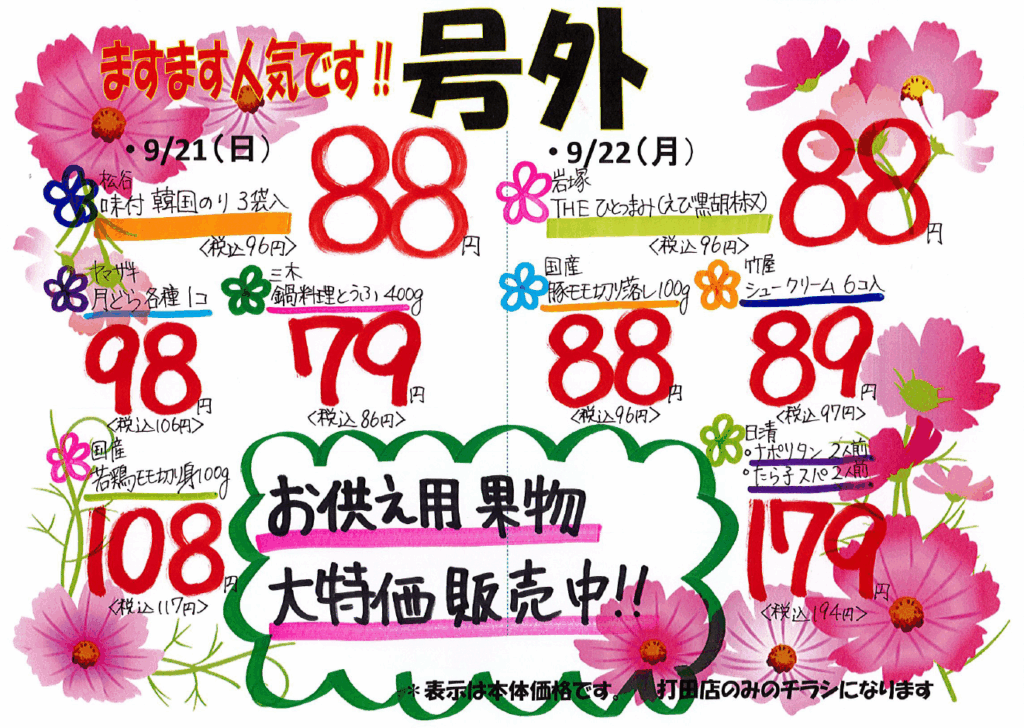 お彼岸のおもてなしは、スーパーネゴロにおまかせください💪
