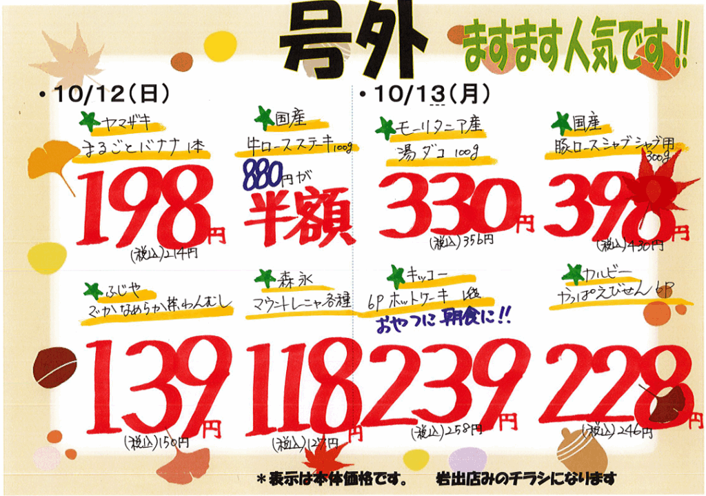 10/15(水)は、会員様ご優待セール👌ポイントカード無料入会受付中‼️